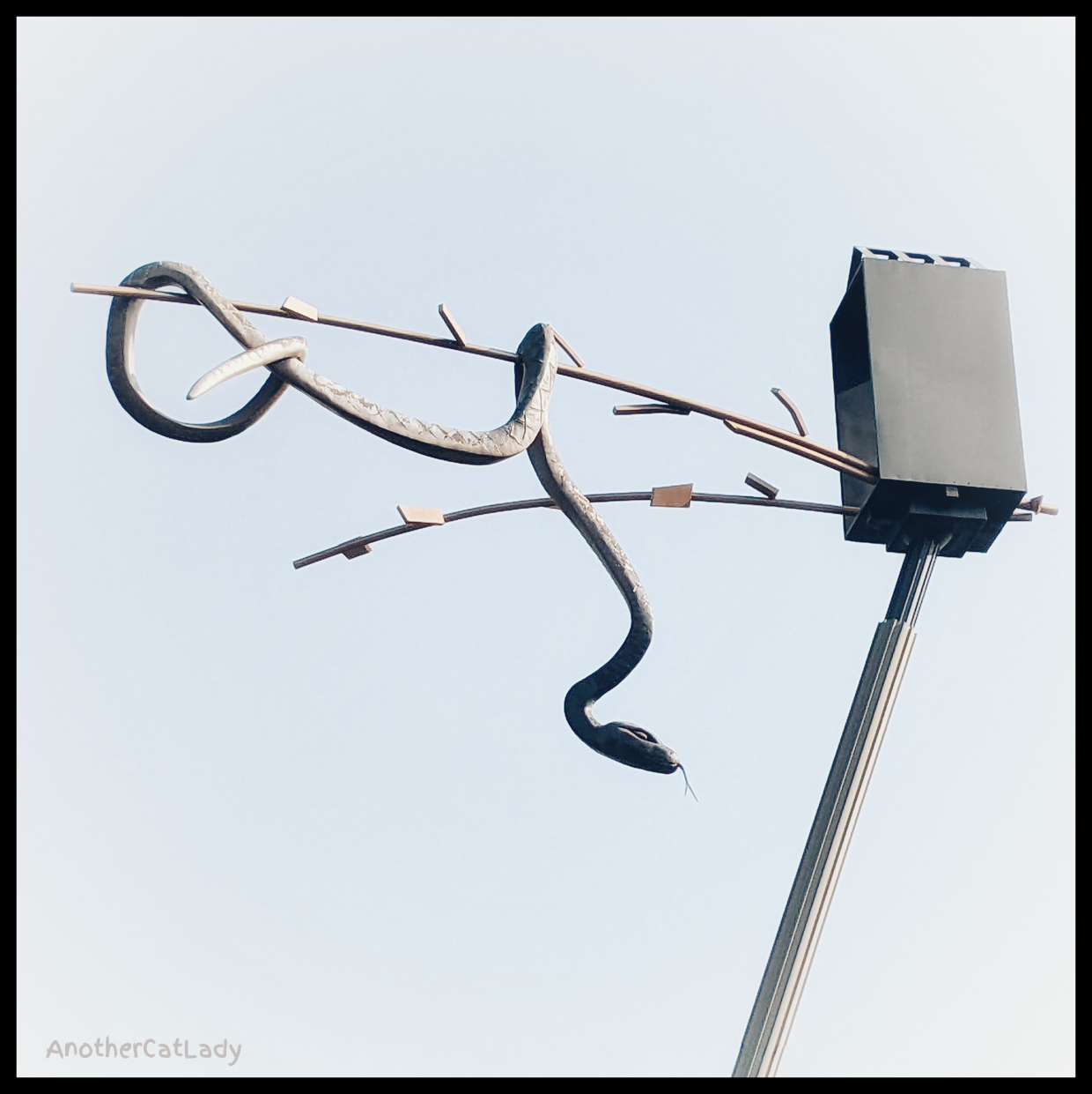 In Ludwigsburg, there is a snake sculpture hanging above a busy intersection.