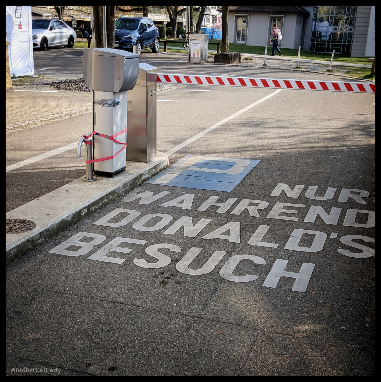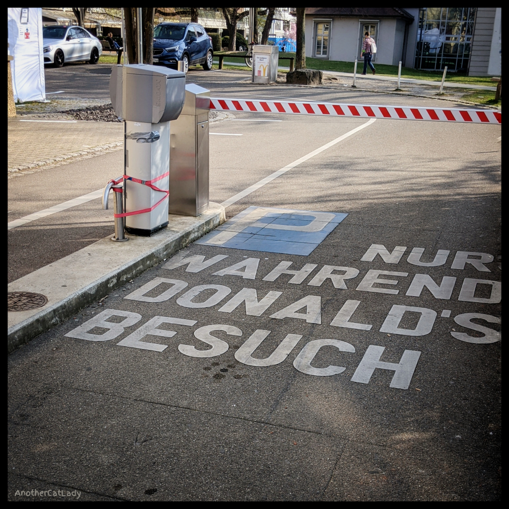 For whatever reason, at this parking lot in Ludwigsburg, Germany, they wrote “only during Donalds visit” on the ground. Who is Donald? And when is he visiting so that parking is allowed there?